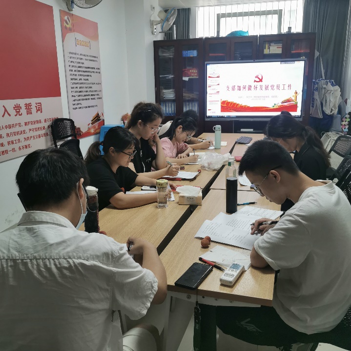 林玉华老师首先对《中国共产党普通高等公司基层组织工作条例》进行了简单的介绍,其次就支部如何做好党员发展工作为主题展开讲解。她首先强调要严把申请人入口关,要严格按照《中国共产党发展党员工作细则》的流程进行党员发展工作;其次,她通过向支委详细介绍党员发展中要抓好培养、民主推荐、政审、公示、预审等过程管理,传达上级党组织对老员工党员发展的最新要求;最后,她就如何做好党员发展档案管理工作向支委们提了要求,要求保证每一位党员档案材料符合流程且完备。