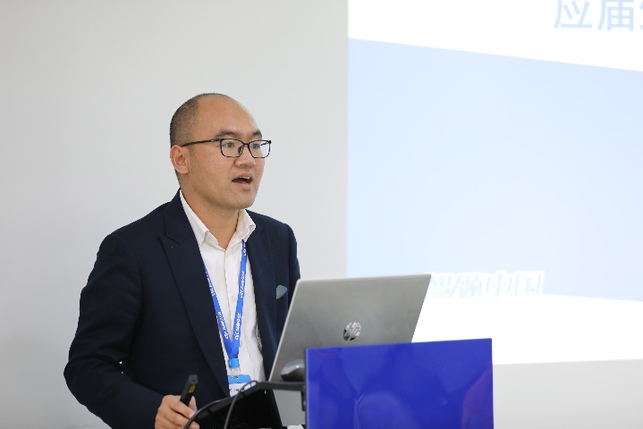 办公室主任陈名朗(左)、市场部总监李树冠(右)为师生做主题报告