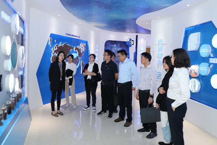 谭运阳书记一行还考察了中检溯源展厅,参观了中检集团文化展厅和党员活动室,深入了解中检集团的检验平台所开展相关的产品测试业务、产品认证业务等。