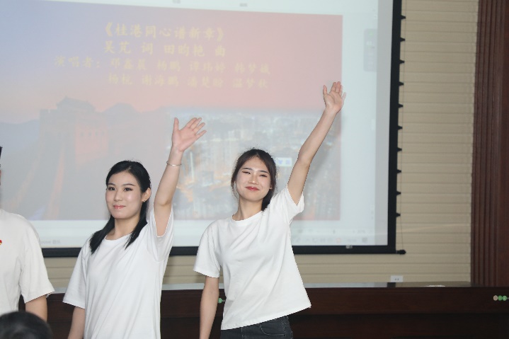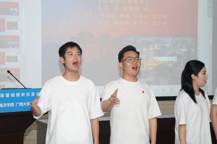 赵琳教授一一向师生们介绍《你好,同志》《平安归来》《一山一石一丰碑》《桂港同心谱新章》《梦想》等歌曲背后的一段段感人的故事,一首首铿锵悦耳的歌曲讲述了一段段伟大的精神,每一首倾情演绎都赢得了大家阵阵掌声。师生们在感受红色经典作品艺术魅力的同时,重温峥嵘岁月,感悟初心使命,汲取奋进力量。