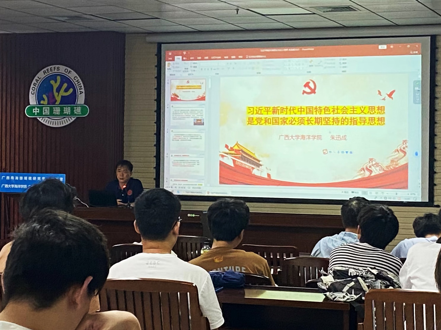 他结合当今时政以及身边的例子深入阐述习近平新时代中国特色社会主义思想创立的时代背景,讲解了习近平新时代中国特色社会主义思想的"十个明确"、"十四个坚持"、"十三方面成就",带领大家学习了“六个必须坚持”,深刻领悟习近平新时代中国特色社会主义思想的世界观、方法论和贯穿其中的立场观点方法。