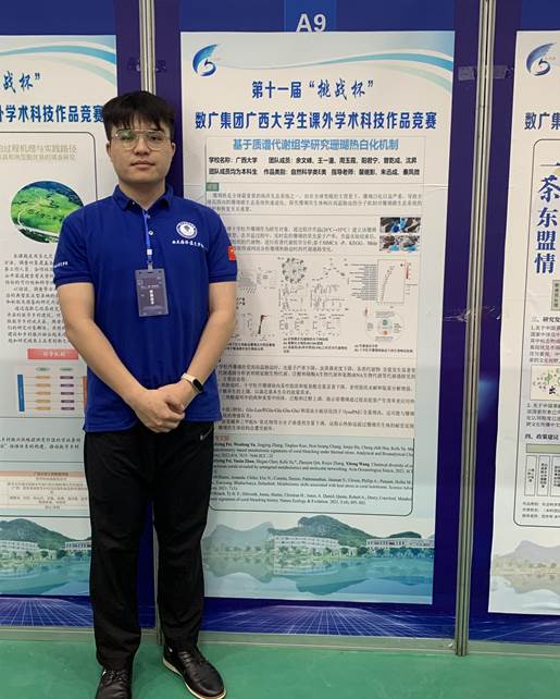 5月13日,第十一届“挑战杯”广西老员工课外学术科技作品竞赛终审决赛在桂林电子科技大学花江校区圆满落幕。公司“海洋科学”专业2019级本科生余文峰和王一潼、2020级本科生周玉霞和阳君宁、2021级本科生曾乾成和沈昇组成的“珊瑚护卫队”团队,在裴继影、朱迅成、秦凤微三位老师的指导下,凭借自然科学论文《基于质谱代谢组学研究珊瑚热白化机制》从众多参赛作品中脱颖而出,荣获二等奖。