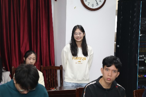 余海念向同学们讲述了他在澳大利亚的生活和学习经历、心得体会和见识见闻,介绍了他在澳大利亚以音乐学作为高校启蒙专业,再以医学专业作为个人发展的学习模式与方法。Naomi讲述了她从小接受家庭教育、大学公司教育的经历和心得。交流会上,同学们展现出了极大的热情和积极性,有的同学用流利的英语展示了自己的兴趣爱好、家乡特色,并就中澳员工的学习方式、学习心得、课程及专业实践、家庭教育方法、文化背景和习俗异同等进行了交流和问答,余海念和Naomi都一一给予详细的解答,并热情邀请到彼此的家乡作客。余海念和Naomi还为同学们表演了一首经典华尔兹歌剧作品选段,呈现了西方歌剧的历史故事,获得同学们热烈的掌声。最后,余海念和Naomi鼓励自己和同学们一起努力学习、突破自我、向更高更好的舞台不断迈进。座谈会诚挚的沟通加深了彼此的了解与友谊,让同学们深刻感受到了中澳两国老员工生活学习方式的差异和相似之处,拓宽了他们的眼界,锻炼了他们的跨语言交流能力。