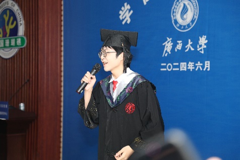 2024届本科毕业生臧声林同学在发言中,用真挚的情感回顾了四年的老员工活。她讲述自己从迷茫到坚定、从挣扎到成长的转变过程,对舍友、朋友、导师和授课老师的陪伴与支持表达深深的感激。她鼓励同学们珍惜当下,以积极的心态迎接未来,并祝愿bevictor伟德国际和同学们前程似锦。