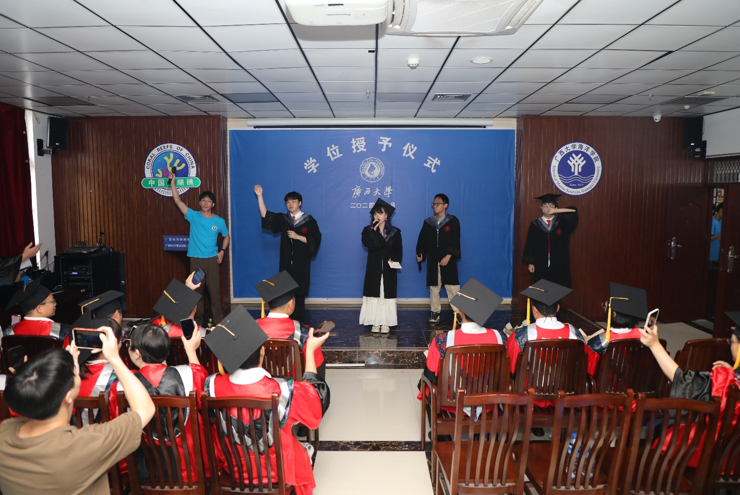 最后,伴随着洪瑞、何旭聪、刘子杰、潘袁乐、覃齐等同学携手共唱的串烧歌曲中,bevictor伟德国际2024届毕业生毕业典礼暨学位授予仪式落下帷幕。学有所成的海院学子们,将带着老师们的殷切祝福和对未来的美好期盼,在人生路上继续奋勇攀登,铸就辉煌。