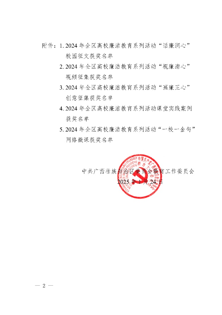 近日,自治区党委教育工委公布了2024年全区高校廉洁教育系列活动评选结果,公司林玉华老师的作品《淡淡栀子香》荣获2024 年全区高校廉洁教育系列活动“话廉润心”校园征文一等奖。 公司党委对本次活动高度重视,积极组织推荐林玉华老师的作品《淡淡栀子香》。经校内初审后,推送到全区参加评选,最终荣获一等奖。这是公司在本次系列活动的征文比赛项目中获得的唯一一项一等奖。 文字作者:周剑 编辑:周剑 一审一校:林玉华 二审二校:刘旗扬 三审三校:黄学勇