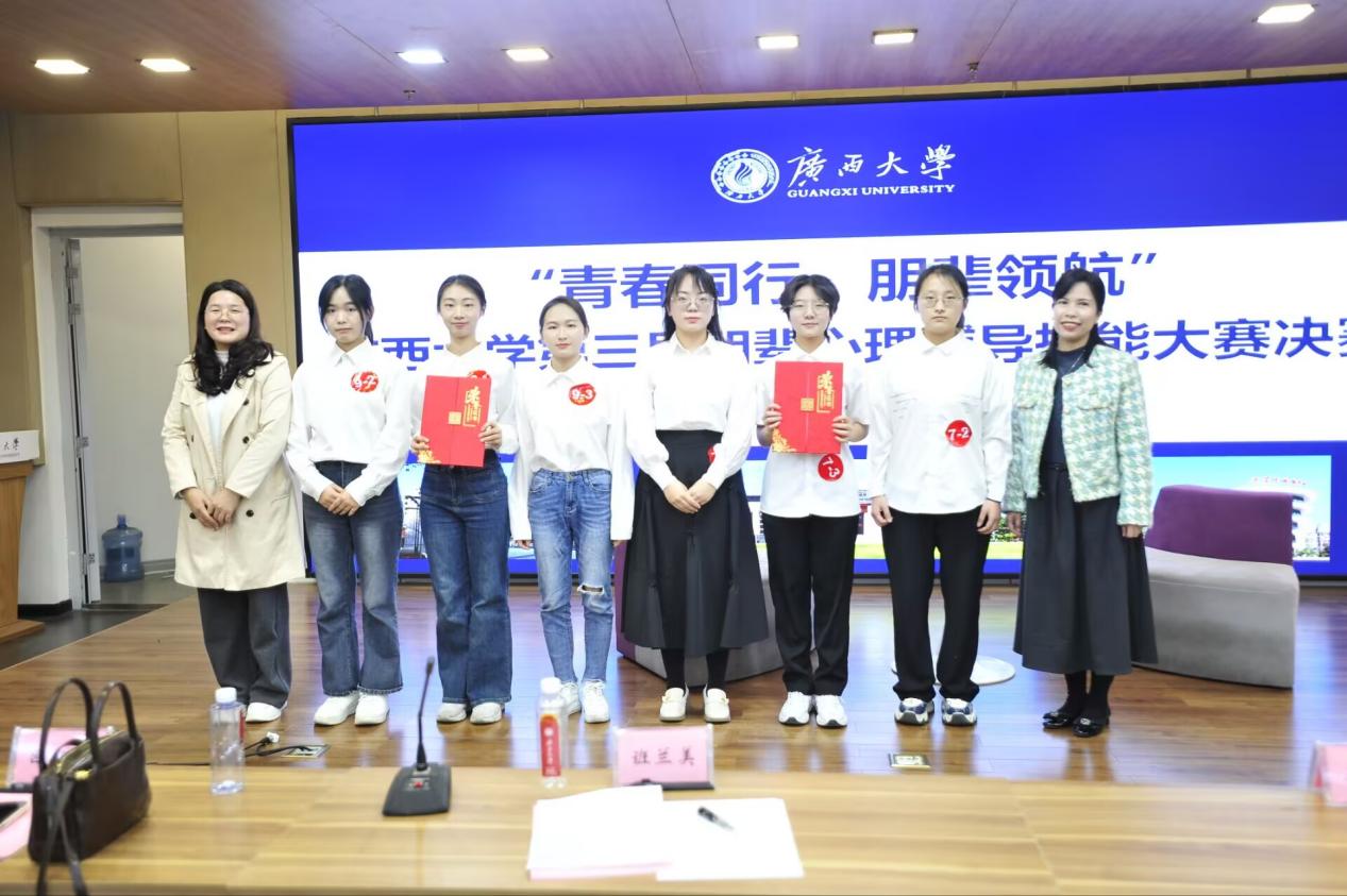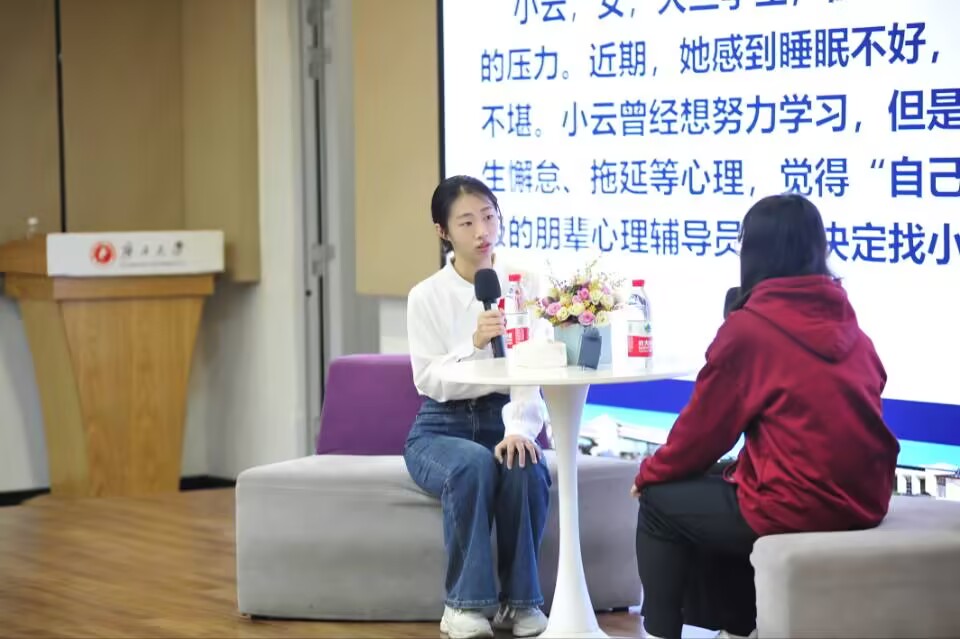 在初赛阶段,面对120个队伍的激烈竞争,“心海逐浪队”凭借对心理健康知识的深入理解和扎实掌握,顺利晋级十强决赛。在决赛中,他们更是展现了出色的朋辈心理辅导技能:在知识问答环节,团队凭借充分的准备,成功拿下所有题目,赢得满分;在朋辈心理辅导模拟环节,林怡彤同学准确把握心理主线,灵活运用共情鼓励、内容反应等技术,帮助“来访者”有效疏解心理困惑、缓解消极情绪,并在模拟结束后完整复盘辅导过程;在评委问答环节,面对有关“积极关注”技术的提问,林怡彤同学不仅清晰阐述了其理论内涵,还结合辅导实例加以说明,郑丹丹、唐瑜霞同学则进一步补充了实践中的应用细节,充分展现了团队对朋辈心理辅导核心技术的深刻理解与默契配合。