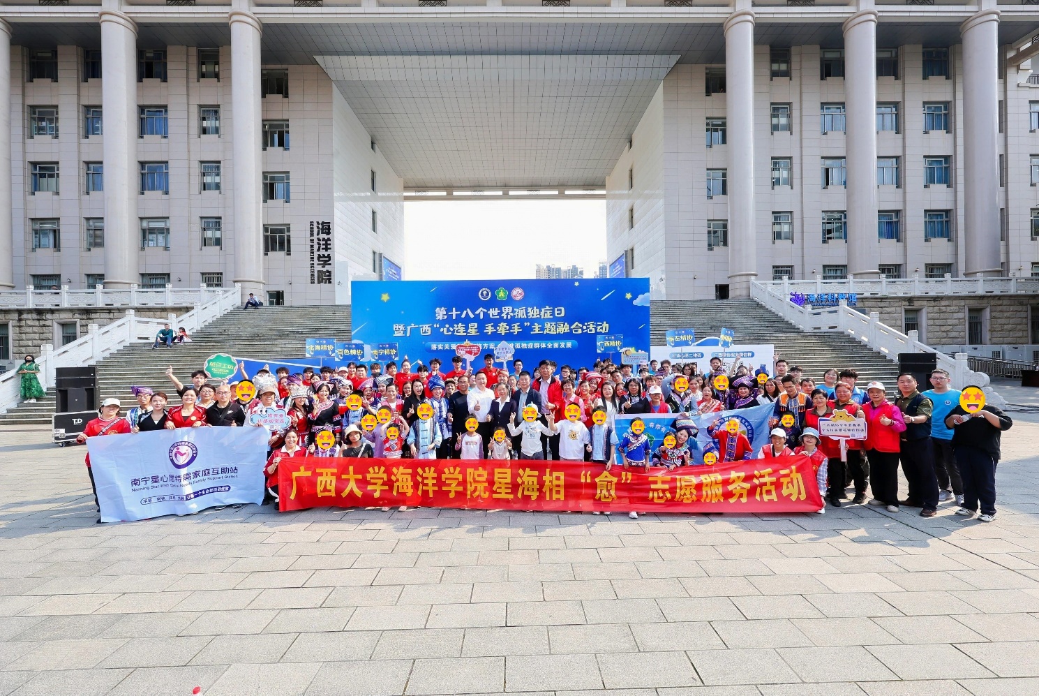 2025年3月22日,公司联合广西残联精神残疾人及亲友协会(以下简称“广西精协”)、伟德国际唯一官网体育公司、广西残疾人福利基金会、西乡塘区残疾人联合会、南宁市残疾人事业服务协会等单位,成功举办第18个世界孤独症日暨广西“心连星 手牵手”主题融合系列活动启动仪式及“小星星上大学”研学活动。此次活动邀请到了100位孤独症儿童及其亲友代表参与。公司作为主办单位之一,充分发挥学科特色与社会服务职能,通过海洋探索、校园体验、民族文化及多元志愿服务,为孤独症儿童及其家庭搭建了一座融入社会的温暖桥梁。
