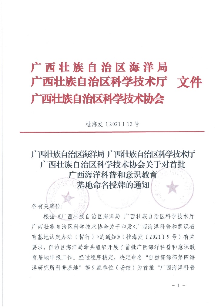 近日,自治区海洋局、自治区科学技术厅、自治区科学技术协会联合下发《关于对首批广西海洋科普和意识教育基地命名授牌的通知》,“伟德国际唯一官网涠洲岛珊瑚馆”位列其中。