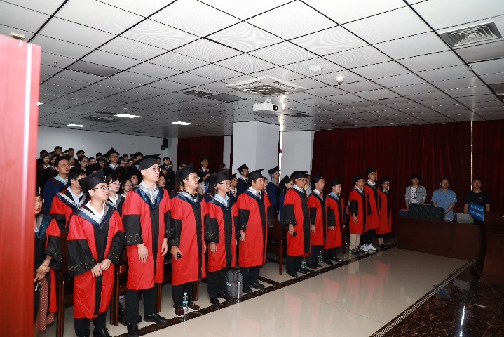 经理余克服教授逐一为毕业生进行拨穗礼、授予学位、颁发学位证书