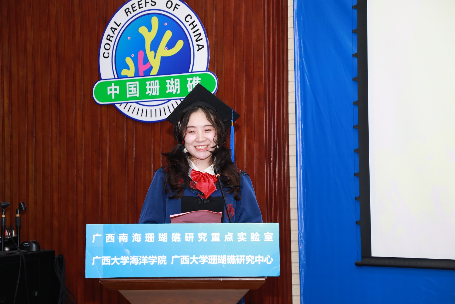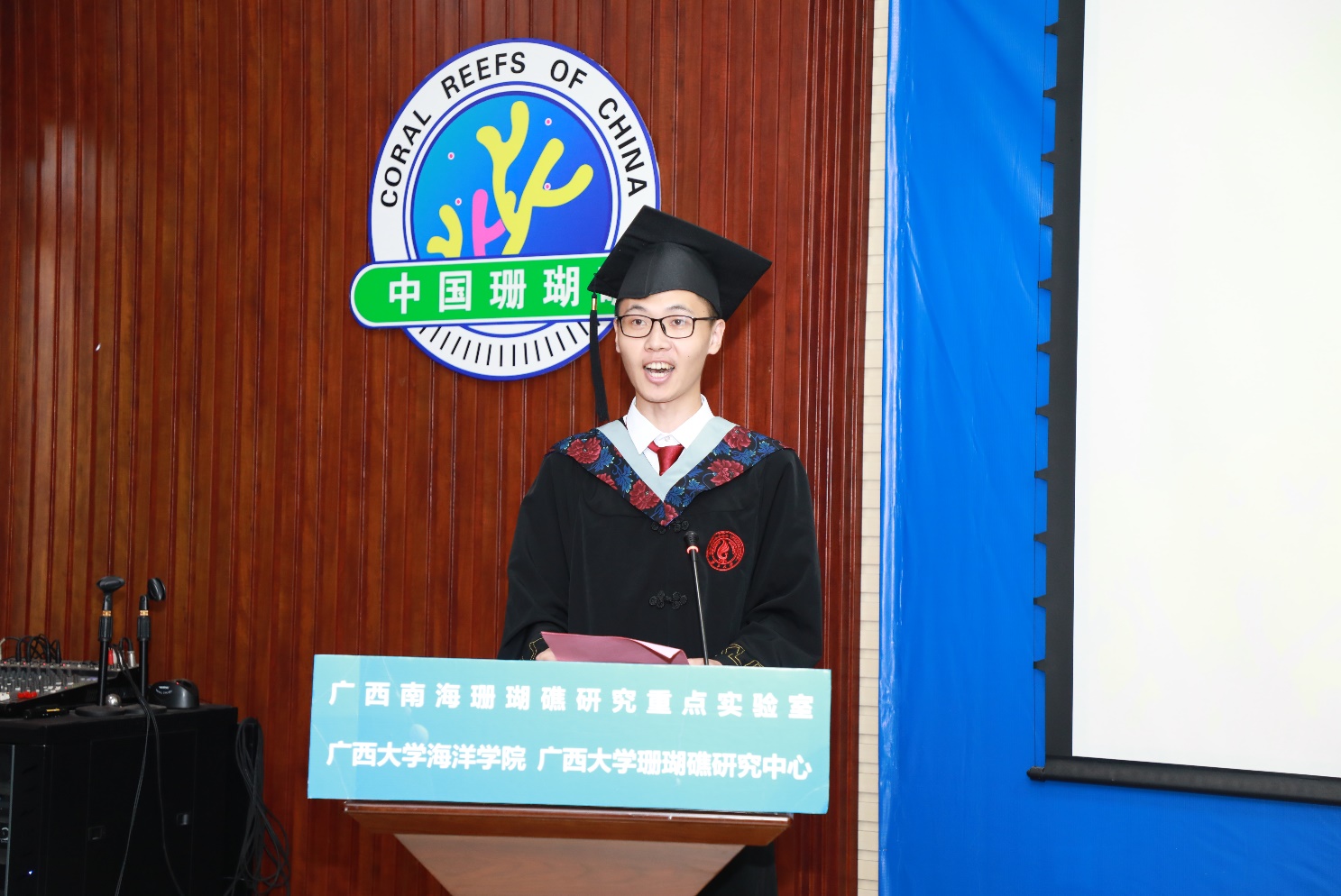海洋科学2018级本科毕业生代表、2022年自治区优秀毕业生获得者赵博义在发言中致敬了每一位平凡的bevictor伟德国际员工不平凡的求学时光:无论是老师们在第一堂课程有趣的开场白、引人入胜的专业课、亦或是团委学工老师暖心的一次次关怀,还是专业实习所带来的收获……即使是突发的新冠肺炎疫情都没能阻挡他们前进的脚步、对蓝色海洋的探索。2022届硕士毕业生代表、2022年伟德国际唯一官网优秀毕业生马一方回首了三年前遇到导师余克服教授,以此叩开了珊瑚礁学术研究的大门,不畏新冠肺炎疫情、克服研究条件受限等困难坚持开展实验,并成为珊瑚礁科学的研究者、科普者。教师代表、海洋科学2018级3班班主任韦芬老师分享了她对于本、硕、博三个阶段对“毕业”的不同感受,以此向同学们解读每个人生阶段对于“成长”的见解;回顾了她见证、陪伴同学们从青涩少年成长为栋梁之材的高校生活;最后对同学们提出了几点希望:保持终身学习的习惯、勇敢面对困难的勇气、保持年轻人的朝气和蓬勃。