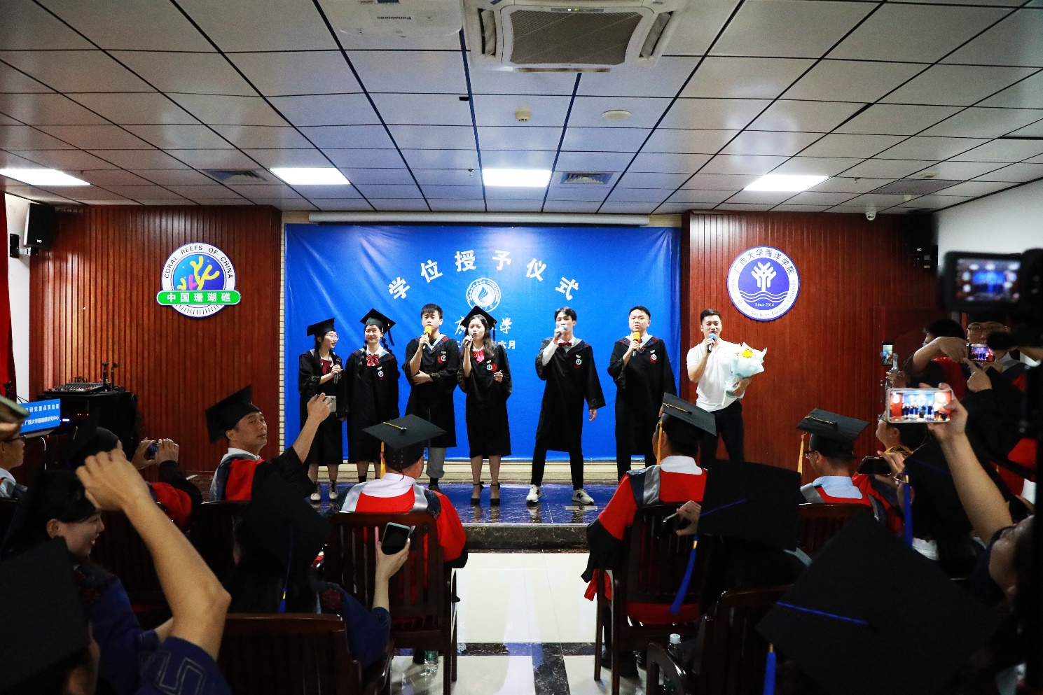 最后,伴随着师生携手共唱的串烧歌曲,在一片闪光灯构筑的星河中,2022届毕业典礼落下帷幕。学有所成的海院学子们,将带着老师们的殷切祝福和对未来的美好期盼,在人生路上继续奋勇攀登。(团委员工会、周剑/文 梁日升、陈曦、吴文乾、李华德、周剑/图 周剑/编辑 余克服/审核)
