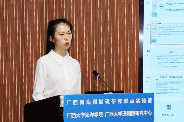 于婉君同学(导师:余克服教授)主要对涠洲岛珊瑚礁区的底质和珊瑚进行了相关研究,其论文题目是《涠洲岛珊瑚礁区的底质特征及其对珊瑚分布的影响》。读研期间,担任班级团支书和院研会临时负责人,并参与国家自然科学基金重点项目和广西创新驱动发展专项等课题的研究,并以第一作者在国际生物与生态期刊Biodiversity and Conservation上发表一篇SCI论文:《Rapid decline of a relatively high latitude coral assemblage at Weizhou Island, northern South China Sea》 。