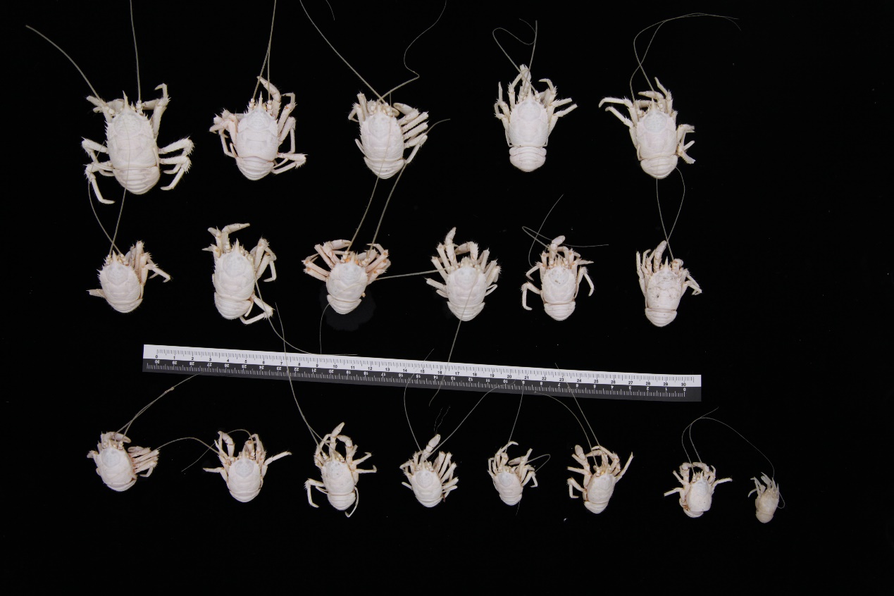 FDZ121潜次所采集的铠甲虾样本(伟德国际唯一官网 陈飚/采集、海洋二所 李启航/拍摄)