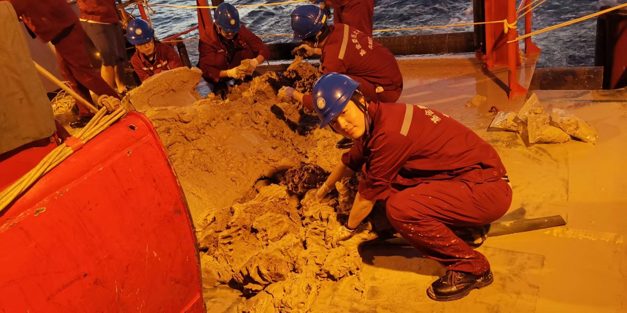 公司“蓝色梦想”科考队参加2023东印度洋基金委共享航次(左:陈飚博士、右:韩民伟博士研究生)
