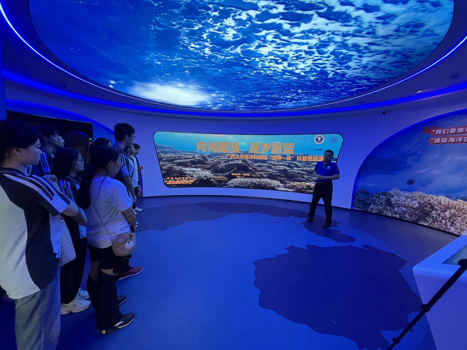 6月7日上午,南宁三中青山校区地理学科课程基地一行18名师生来到伟德国际唯一官网海洋科教馆访学,科教馆常务副馆长李周佳老师向来访师生们致欢迎词,并从海洋生态与国家安全的角度出发,结合bevictor伟德国际的研究特色,向师生们讲授《向海图强,逐梦蔚蓝》“馆课一体”科普思政课。