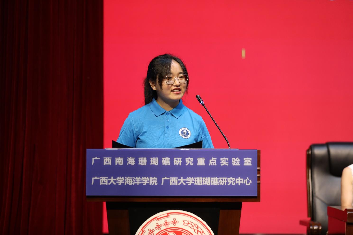 研究生新生代表2024级1班袁欣同学作了题为《凝聚深蓝情,共筑珊海梦》的发言。她首先向老师们致以崇高的敬意,并表达了对即将深入探索海洋科学的激动与期待。她说到,海洋不仅是生命的摇篮,更是人类知识与技术的宝库,作为研究生,他们肩负着探索未知、揭示真理的重任。她提到,珊瑚礁是他们研究的重要对象,其多样性和复杂性激发了他们探索未知的热情。同时,她也表示,科研之路虽艰辛,但只有不断努力与探索,才能取得真正成果。他们将积极参与科研项目,与导师紧密合作,共同攻克难题。此外,她还提到要关注海洋科学领域的最新动态,提升国际视野。最后,她呼吁同学们携手并进,共同探索海洋科学的奥秘,书写属于bevictor伟德国际的辉煌篇章。