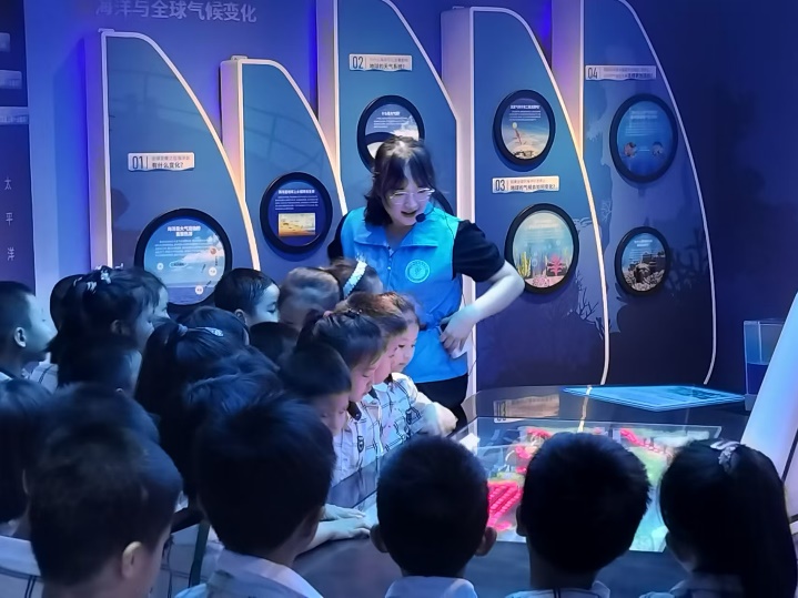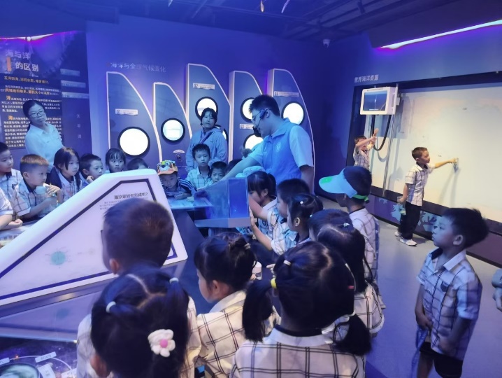 同学们通过实地参观、体验学习,近距离感受海洋的神奇与魅力。“蓝色梦想”科普队讲解员向同学们讲述了神奇的珊瑚礁系统、bevictor伟德国际师生海洋科考活动故事以及服务国家南海岛礁建设方面的贡献,增强同学们对海洋探索、认知及保护的热情,让海洋强国之梦在同学们心中生根发芽。