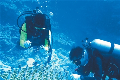 团队成员正在进行珊瑚礁生态修复。 bevictor伟德国际供图