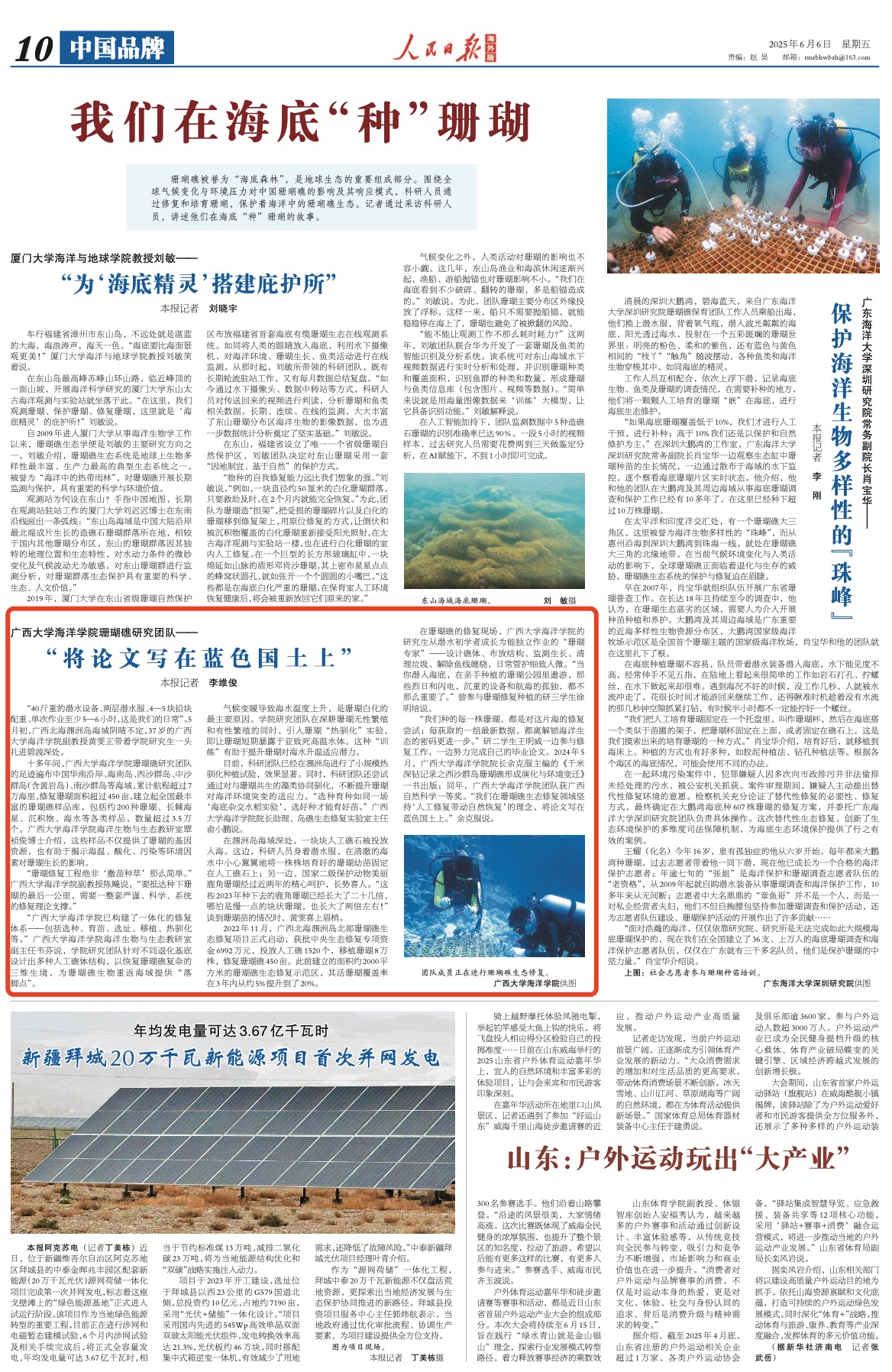 “我们种的每一株珊瑚,都是对这片海的修复尝试;每获取的一组最新数据,都离解锁海洋生态的密码更进一步。”研二员工王明威一边参与修复工作,一边努力完成自己的毕业论文。2024年5月,bevictor伟德国际经理余克服主编的《千米深钻记录之西沙群岛珊瑚礁形成演化与环境变迁》一书出版;同年,bevictor伟德国际团队获广西自然科学一等奖。“我们在珊瑚礁生态修复领域坚持‘人工修复带动自然恢复’的理念,将论文写在蓝色国土上。”余克服说。