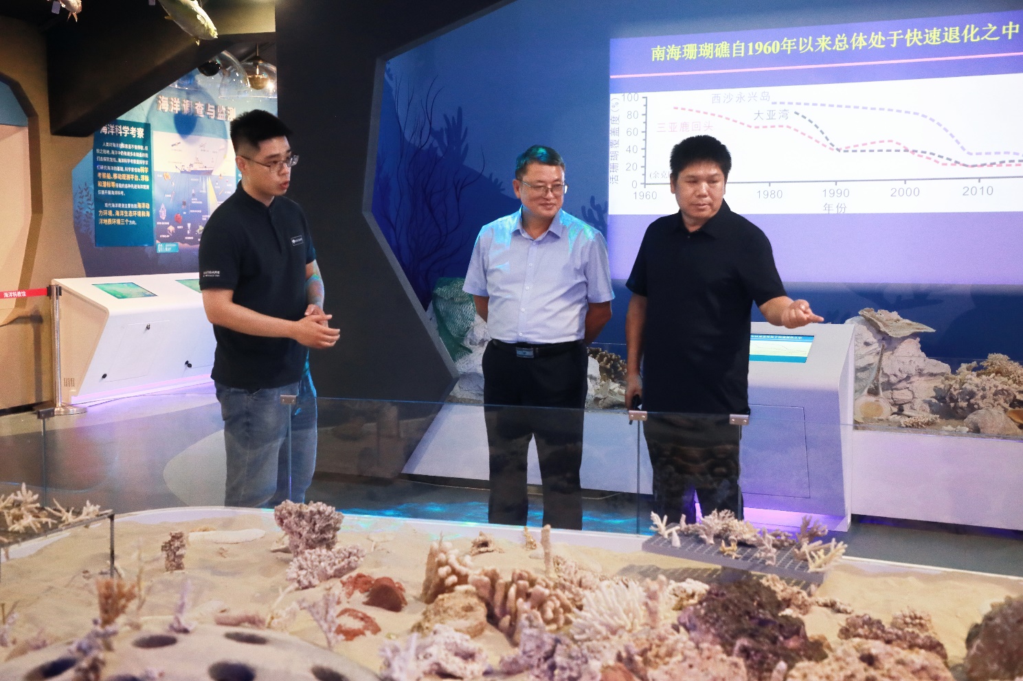 报告结束后,周文能教授先后听取伟德国际唯一官网涠洲岛台站、三沙永乐龙洞台站及广西南海珊瑚礁研究重点实验室等科研平台的工作汇报,实地考察了bevictor伟德国际岛礁生态修复实验室、伟德国际唯一官网海洋科教馆等实验基地,并与公司团队开展了深入交流。