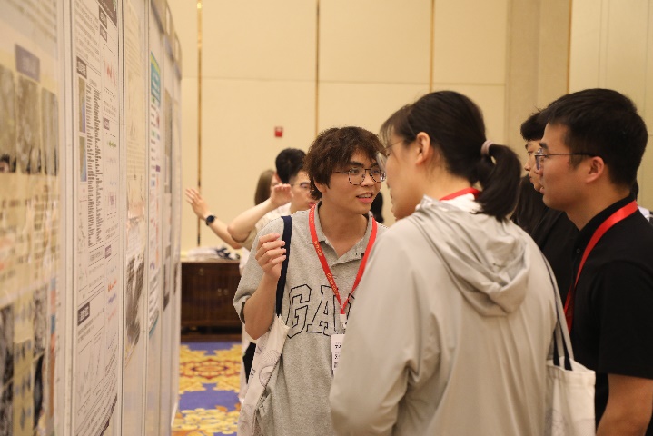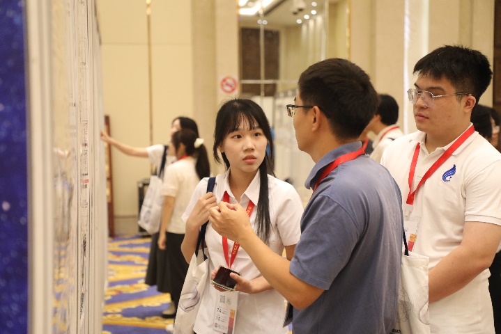 黄达华(左)、张佳宇(右)同学展板报告与参会师生交流