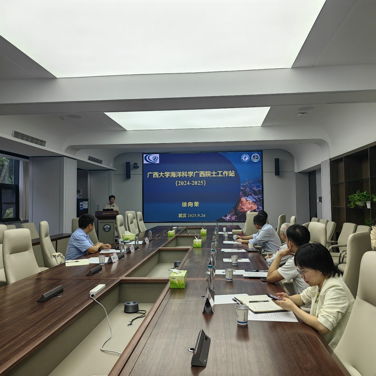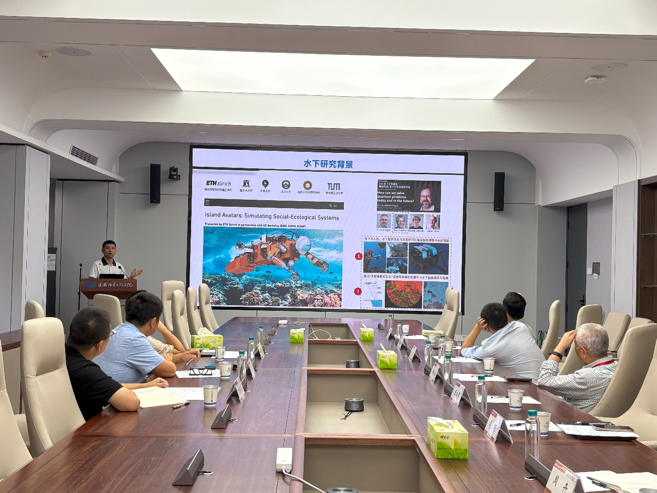 会议在高效务实的氛围中展开。余克服教授率先发言,阐明了此次访问旨在向张祖勋院士致以崇高敬意,感谢其对工作站建设的指导与支持;对武汉大学遥感信息工程公司的热情接待表示诚挚谢意并就双方合作进行深入交流。对此,东道主张永军教授在欢迎辞中积极响应,强调了双方深化科研协同与人才交流的共同期望。乐鹏教授随即系统介绍了公司的学科优势与未来规划,清晰勾勒出合作的技术背景。公司徐向荣教授则详细汇报了工作站已取得的建设成效,从学科交叉、国家服务到人才培养与成果产出,全面阐述了其战略价值。张祖勋院士团队成员李明老师作了题为“珊瑚礁水下机器人与精密摄影测量”的专题报告,结合前沿研究数据与典型案例,生动展示了该技术在海洋生态监测中的广阔应用前景,为双方开展交叉研究提供了具体的技术路径。