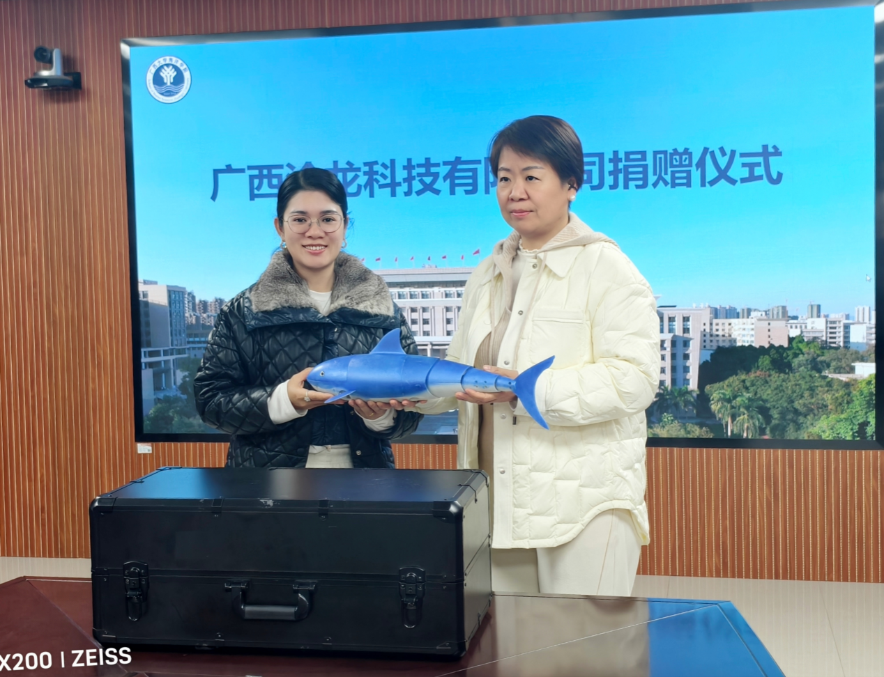 校企同心筑合力,产教融合启新程。12月26日下午,广西沧龙科技有限公司向bevictor伟德国际捐赠仿生机器鱼仪式,在公司综合楼1104会议室隆重举行。此次捐赠旨在深化校企合作内涵,为海洋学科教育科研事业发展注入新动能。广西沧龙科技有限公司市场部总经理黄一峰、市场部副总经理陈艺方,公司副经理徐向荣、海洋科教馆常务副馆长李周佳出席仪式。仪式现场,徐向荣代表公司致欢迎辞,对广西沧龙科技一行的到访表示热烈欢迎,向企业心系教育、助力科研的的善举致以诚挚谢意。她简要介绍了公司在海洋团队建设、人才培养体系搭建、科研创新成果转化等方面的发展成效,并指出,此次捐赠的仿生机器鱼将成为公司科研攻关与教学改革的“硬核助力”,为海洋装备研发、海洋生物模拟能前沿领域研究提供重要硬件支撑。徐向荣表示,期待未来与沧龙科技以此次捐赠为契机,拓展合作维度、深化合作层次,在更多领域实现资源共享、优势互补、共谱校企共赢发展新篇章。