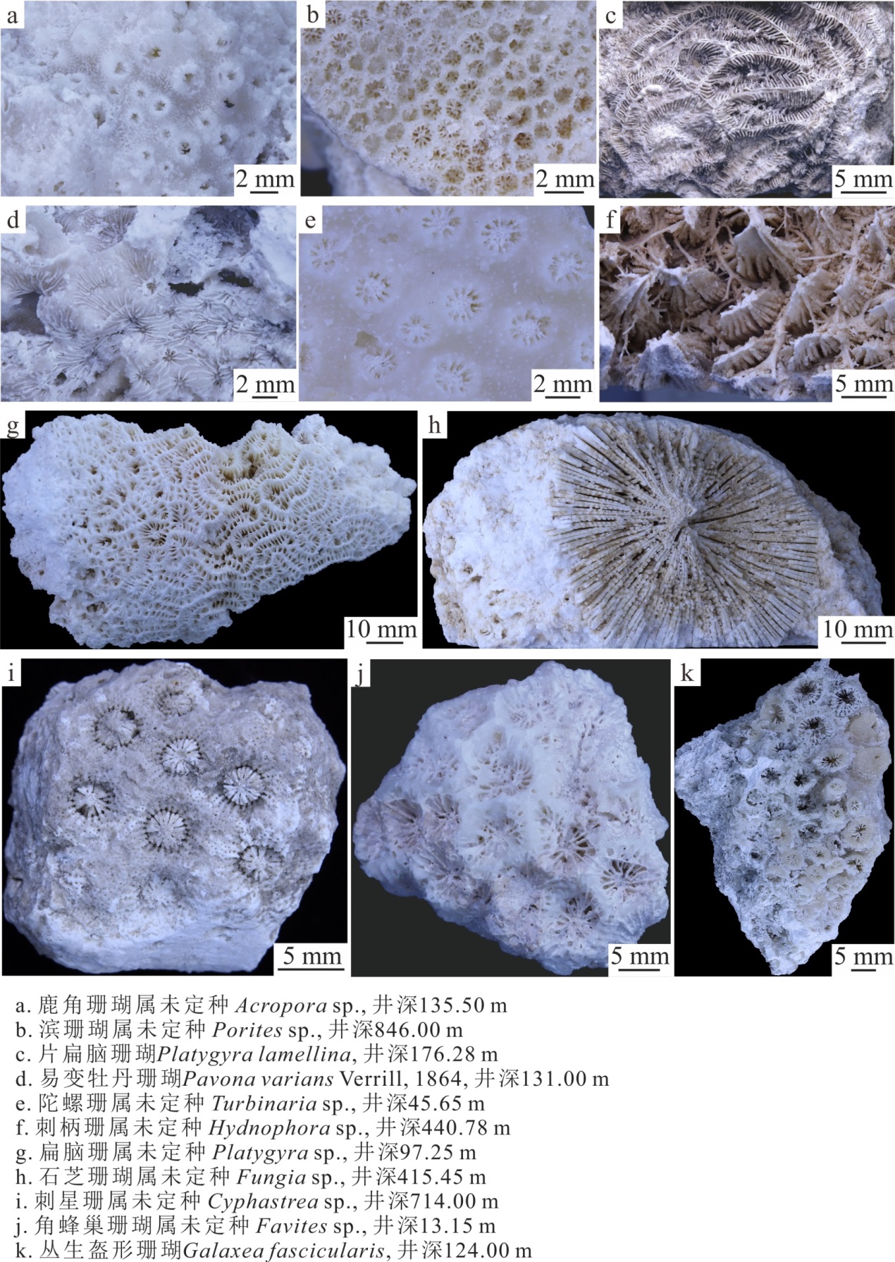 Fig. 5 Typical coral genera and species in Chenke-2 Well