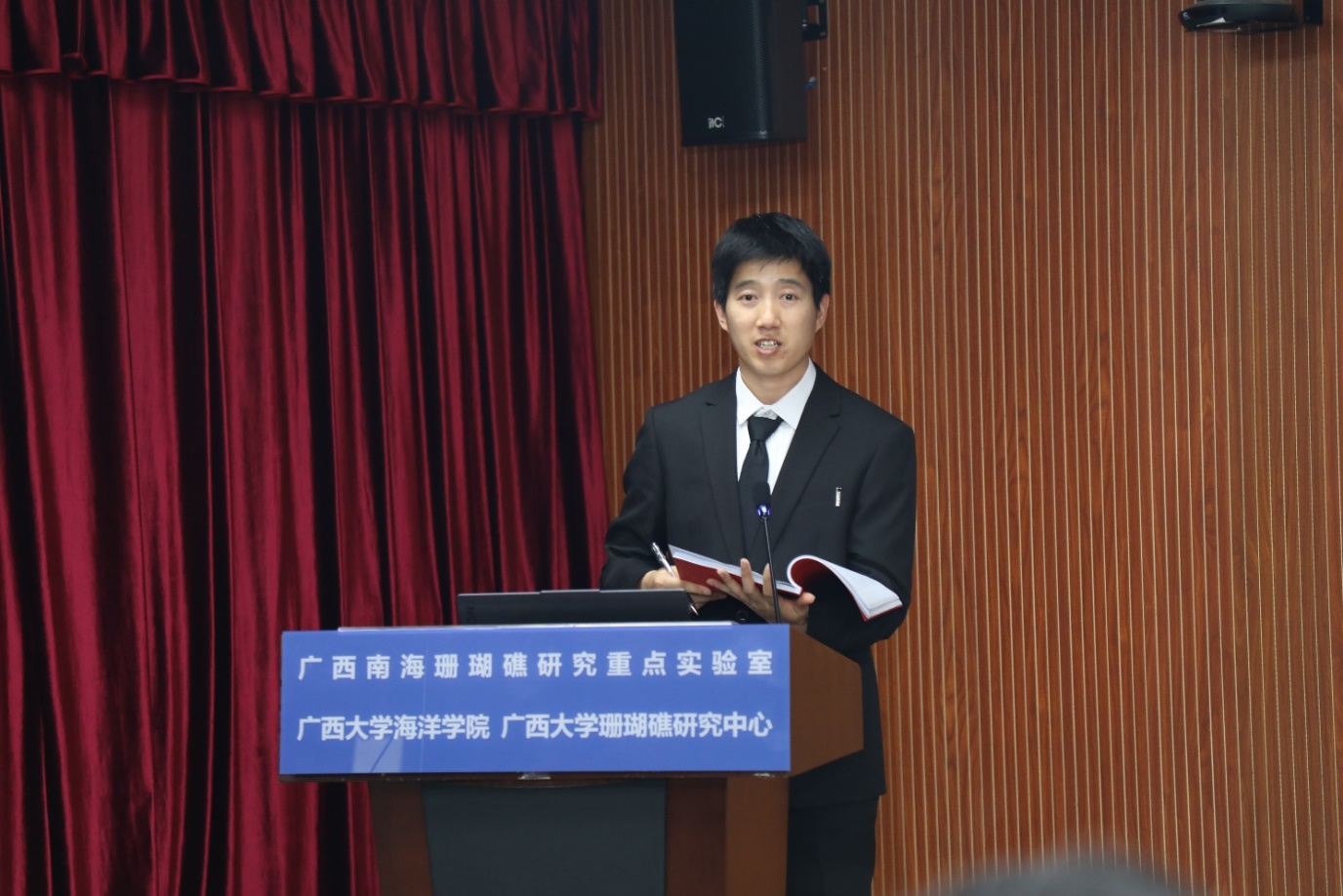 According to the agenda, Han Minwei reported his dissertation titled "Environmental behavior, source-sink mechanism and ecological impact of PAHs in coral reef ecosystem of the SCS". He systematically explained the background and significance, research foundation and research gap between China and abroad, and scientific problems he solved. He demonstrated the research work and results carried out during his master's and doctoral studies.