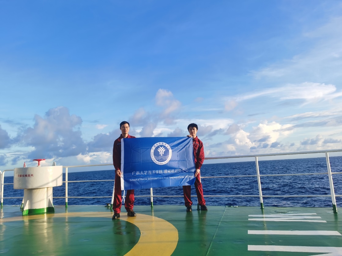 "Blue Dream" scientific expedition team participated in 2023 East Indian Ocean Foundation Committee shared voyage (left: Dr. Chen Biao, right: Han Minwei PhD candidate)