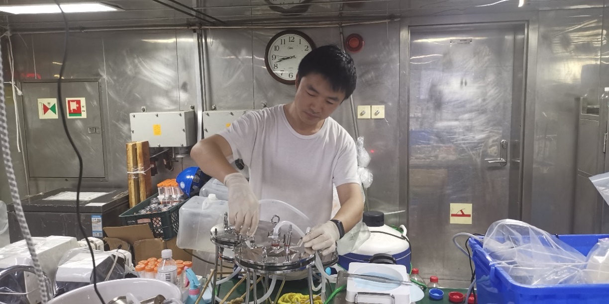 2023 Western Pacific Foundation Shared Voyage Surface Seawater filtration operation (Dr. Yu Xiaopeng in the picture)