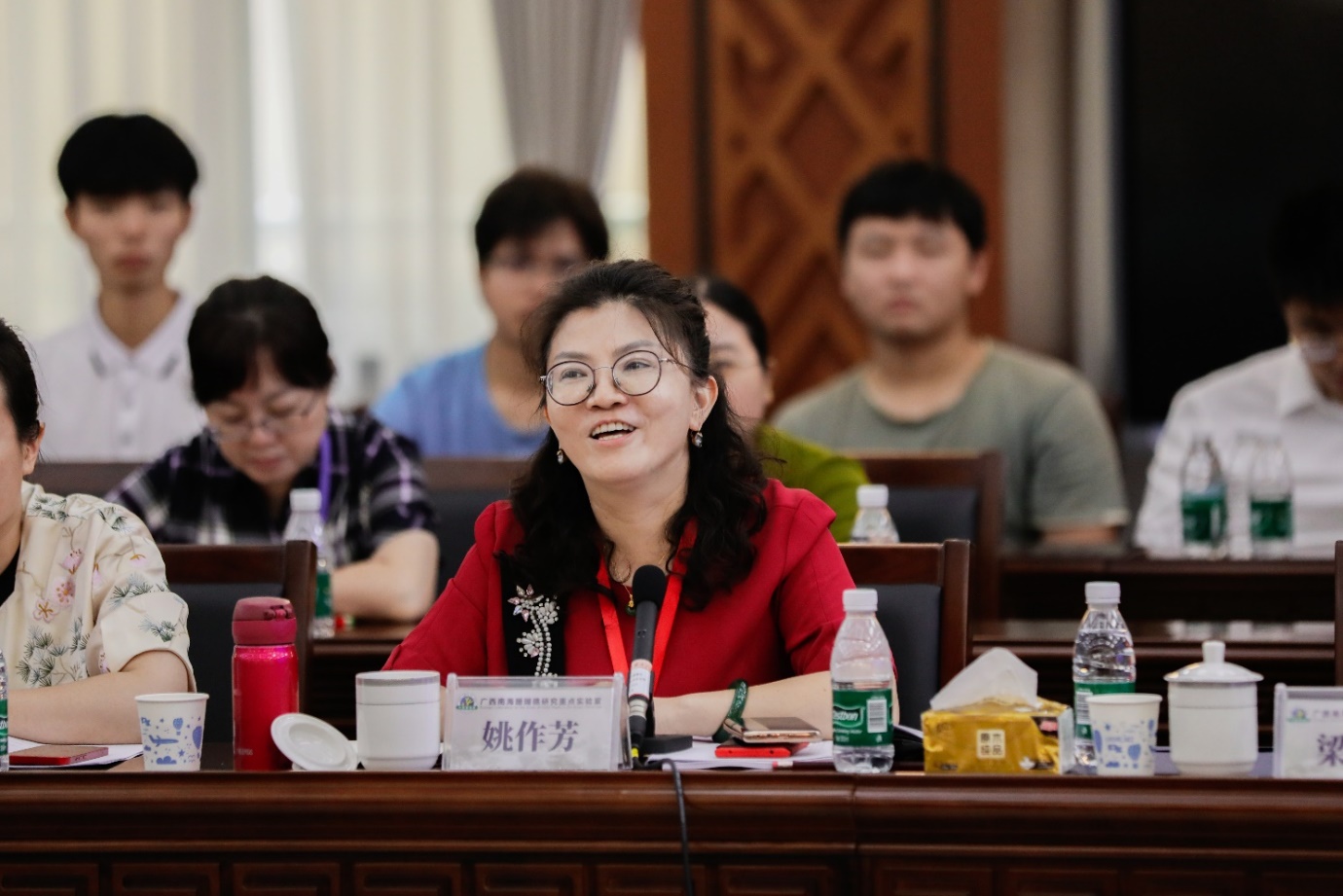 And Liang Enwei (Member of the Standing Committee of the Party Committee (CPC) and Vice President of Guangxi University), Yao Zuofang (Member of the Standing CPC, Assistant to the President, Minister of the United Front Work Department of the Party Committee, and Director of the State-owned Assets and Laboratory Management Office), Shen Peihong (Vice President of the University's Research Institute and Director of the Research Platform Construction Management Office) and Wang Shaopeng (Director of the University's Party Committee Office and Principal's Office). More than 200 people, including laboratory members, graduate students, and undergraduate students, attended the conference.